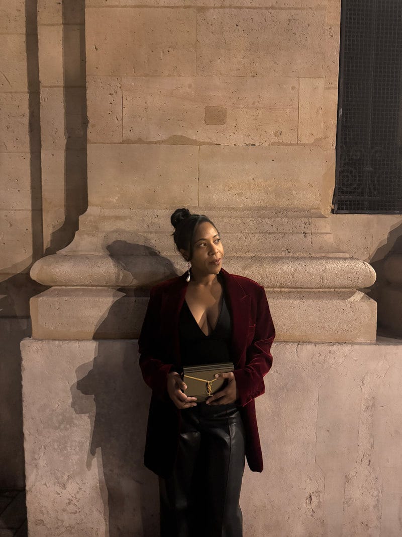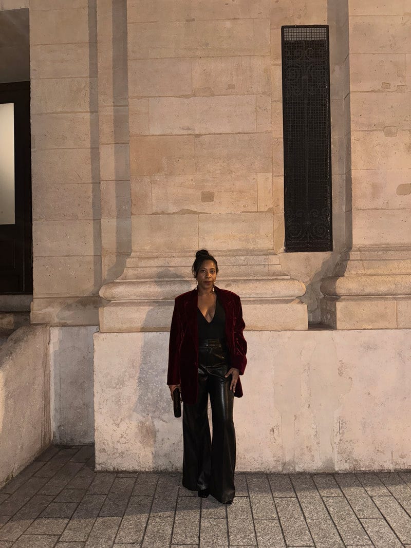 Fast forward to last week. I was invited to a cocktail reception at the Bourse de Commerce – Pinault Collection, for the Corps et Âmes exhibition. Before these events, I now habitually ask about the dress code—Paris can be all-black chic or full cocktail glam, depending on the evening. Hieu suggested a complete look to pair with my new jacket. I opted for simple black underneath that night but made a mental note to try his full vision at another soirée.